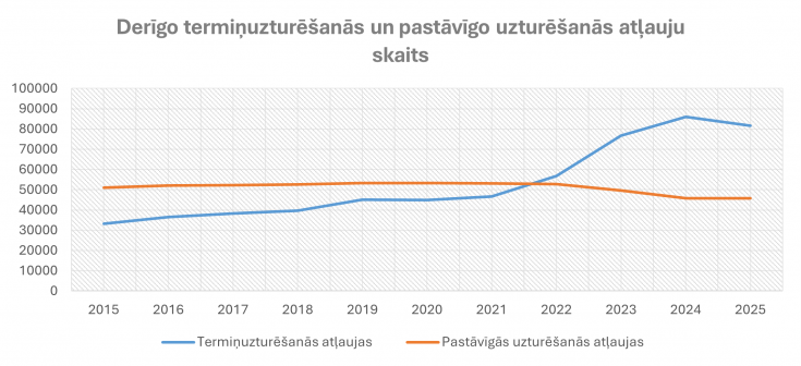 Ar imigrāciju saistīto jautājumu aktualizēšanās kontekstā būtiski aplūkot datus, ko apkopo un publisko Pilsonības un migrācijas lietu pārvalde (PMLP). Pēdējo 10 gadu griezumā kopējais derīgo termiņuzturēšanās atļauju skaits ir pieaudzis – īpaši kopš 2022. gada, kamēr kopējais derīgo pastāvīgo uzturēšanās atļauju skaits ir samazinājies (grafiks nr. 1).