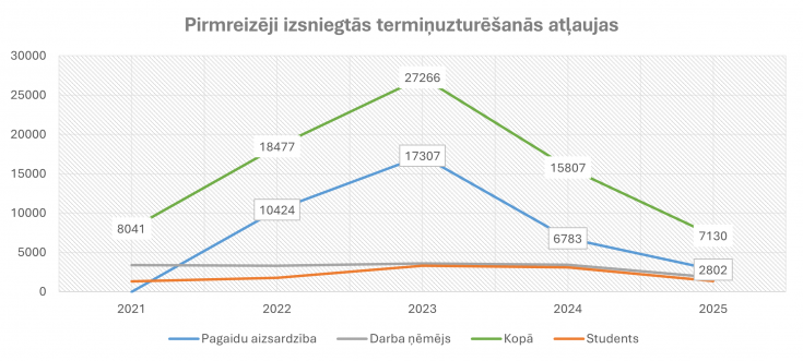 Grafiks nr. 2. Pirmreizēji izsniegto termiņuzturēšanās skaits 2021-2025 1. pusgads. Avots: PMLP dati